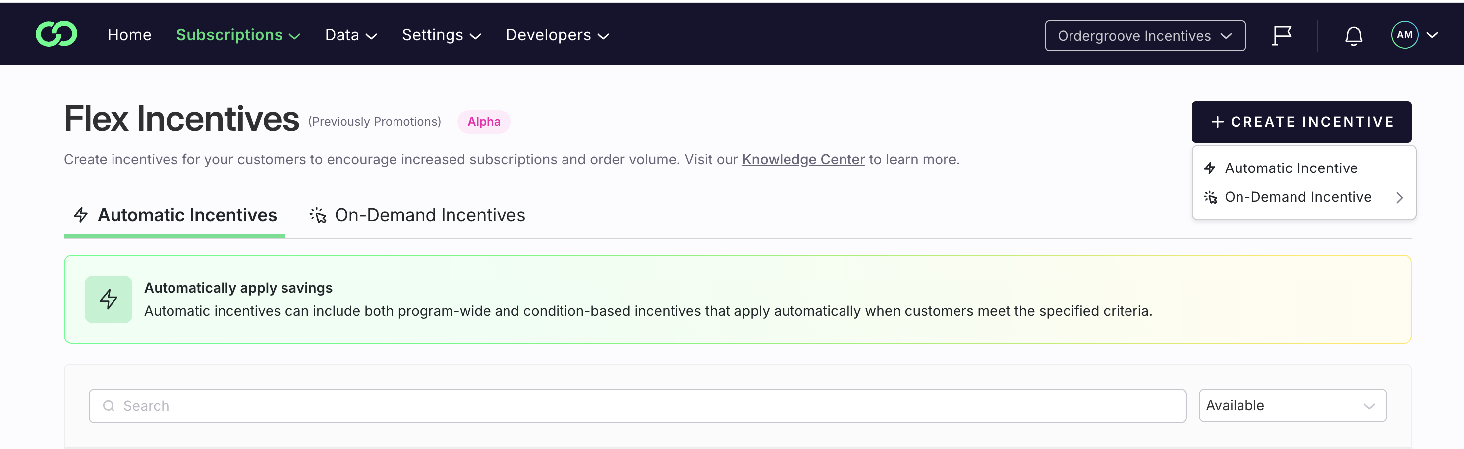 Incentive Builder is in Open Beta - find it in Flex Incentives in your Ordergroove Merchant Dashboard. Reach out to Ordergroove Support or your CSM with any questions.