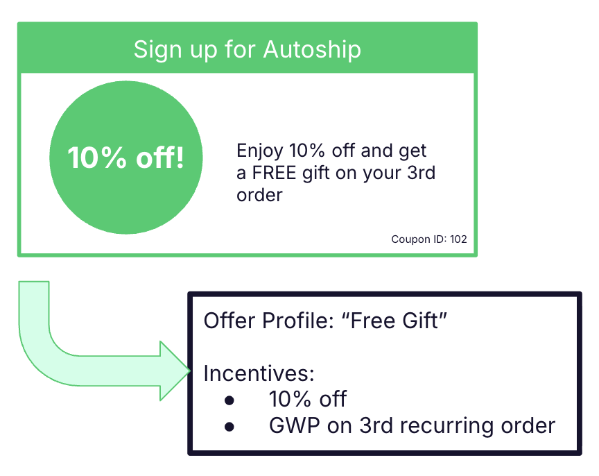 Each Offer Profile is assigned a unique coupon code. Using that coupon, Ordergroove applies the appropriate incentives to subscription orders. Like a coupon you'd use at a store, it contains all the relevant information - without it, the Offer Profile wouldn't function.