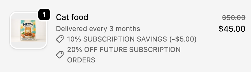 If your recurring incentive is different than the initial incentive for a particular item, you can add Ordergroove's item incentive messaging to be transparent to your subscribers.